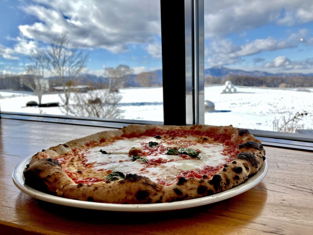 下山後は、長門牧場に寄り、ホットミルク、ソフトクリーム、ピザなどを食べました。