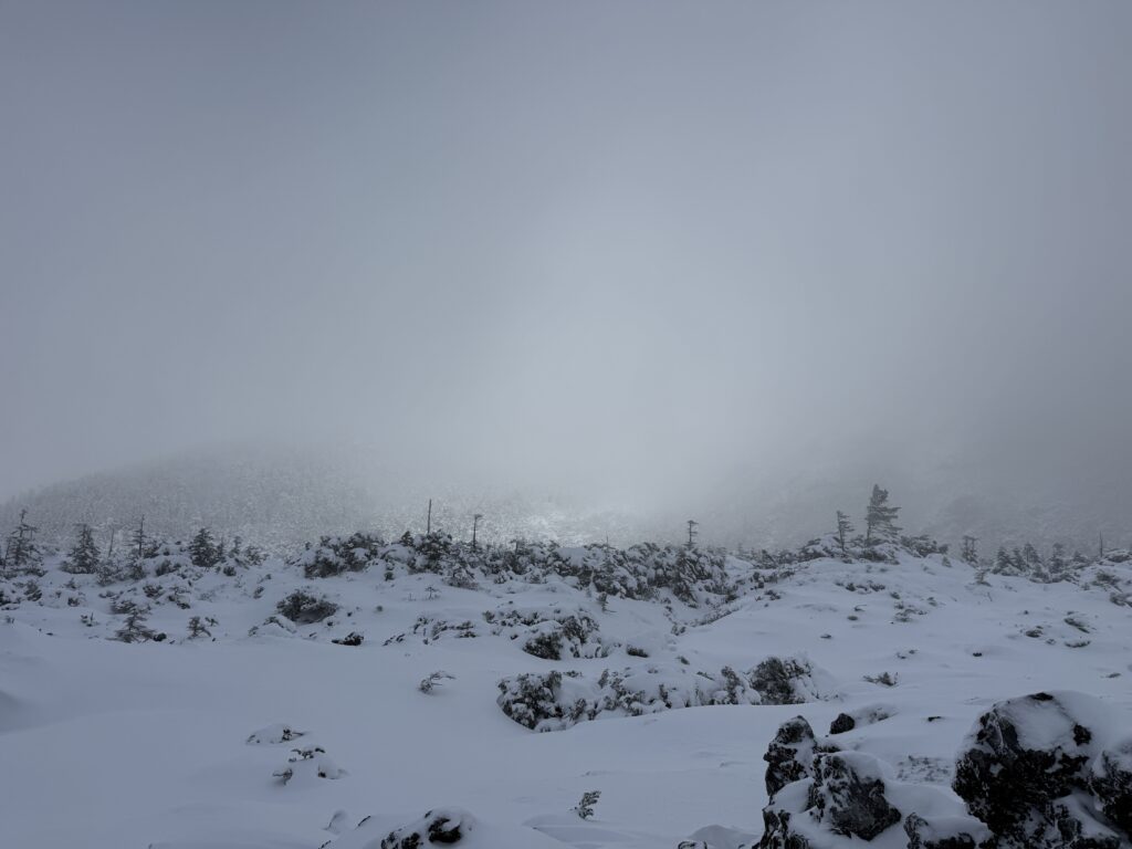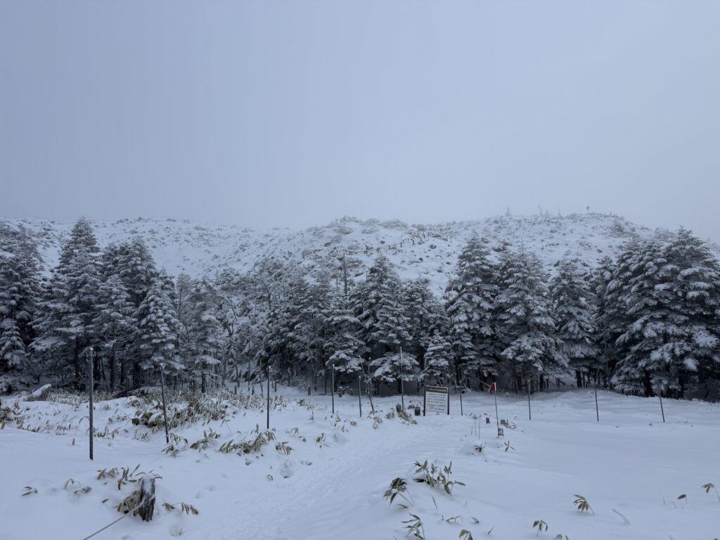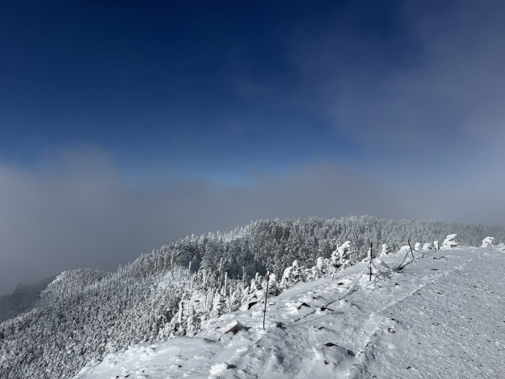 この日はコンディションが良ければ縞枯山まで足を伸ばそうかと思っていましたが、縞枯山は完全に雲の中にあったので、坪庭をぐるっと一周した後はそのまま下山しました。