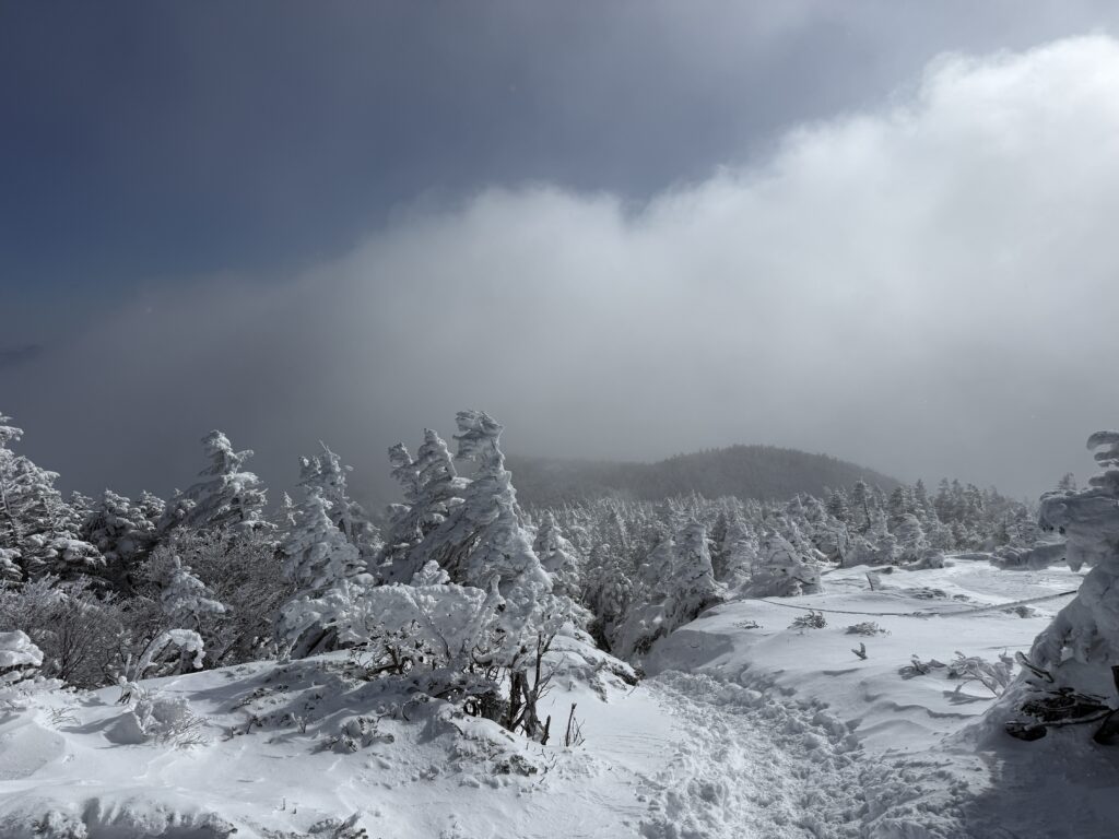 あまり展望はありませんでしたが、樹氷の森が綺麗でした。
